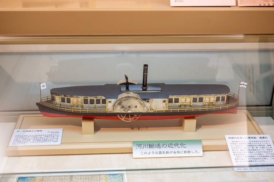 水路运输也迎来了近代化的浪潮。 明治时代,日本各地的大型河流湖泊也引入了蒸汽船。 内国通运公司的“通运丸”号曾在江户川、利根川、霞浦、北浦等地航行,运送货物和乘客。