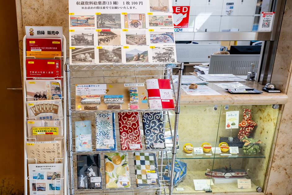 1楼接待处前,还有收藏资料的明信片、点心套餐等纪念品。 非常适合作为参观的纪念。