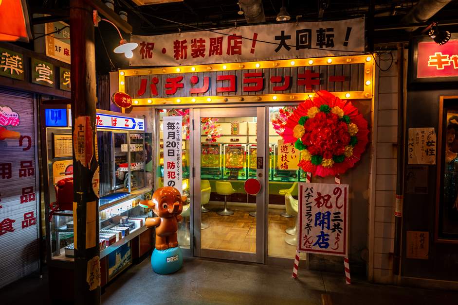 从经济高速增长期到泡沫经济时期,弹珠机店作为一种轻松的娱乐方式大受欢迎 。在“幸运弹珠机店”里,可以实际玩到当时的“羽根物”(翅膀式)和“权利物”(中奖权式)等机型 。当然,即使中奖也没有奖品,敬请谅解 。