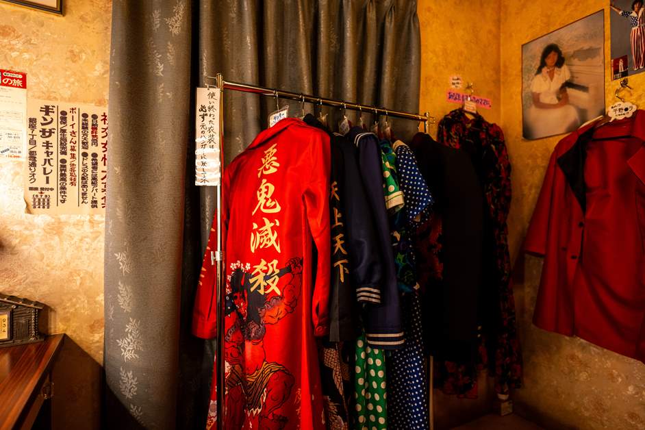 在模仿夜总会后台的空间里,备有“特攻服”、水手服和偶像服装等,可以体验角色扮演的乐趣 。