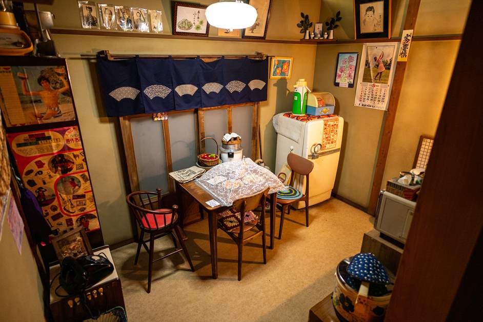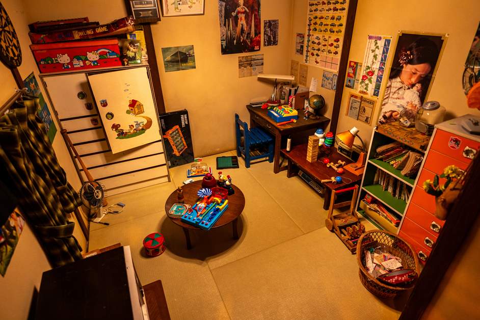 在再现了昭和时代儿童房的区域,可以回归童心,在榻榻米房间里悠闲放松 。