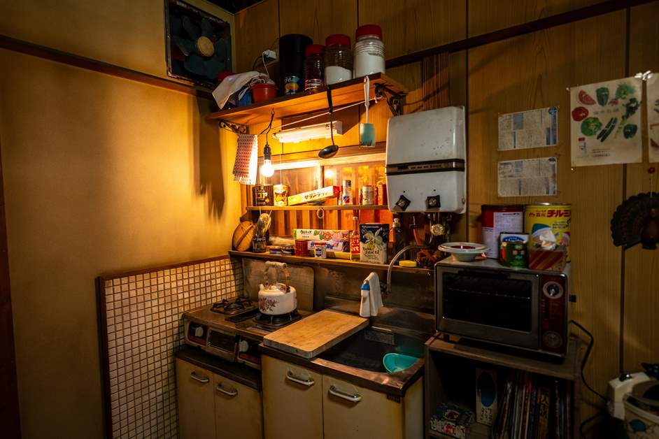 儿童房对面,再现了昭和家庭的厨房 。没有洗碗机或食物处理器,洗碗和烹饪主要靠手工 。空间也比现在小得多,要收纳四五口之家的餐具和锅具需要花些心思 。