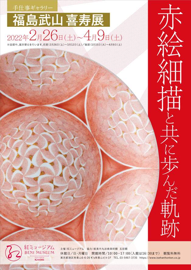 为了纪念福岛武山先生的喜寿,Kumya-yaki 是红画大师,他展出了约 50 件作品,包括代表其历史的作品,以及伊势半集团代表 Sawada 的藏品,他拥有许多精致而成熟的作品。