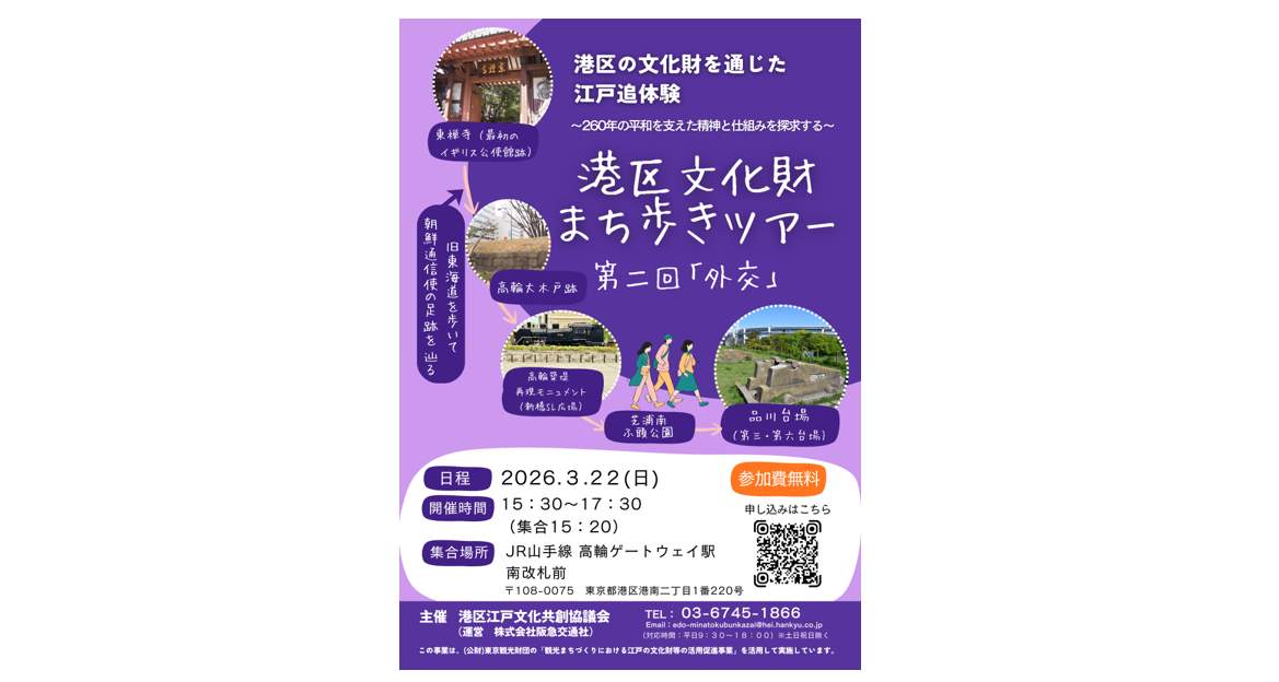*请查看以下网址以获取第三次及之后城镇徒步游的申请和时间表。 https://www.hot-link.jp/index.php/minato/edo/tour (如果申请人数众多,将举行抽签。)