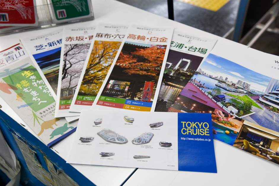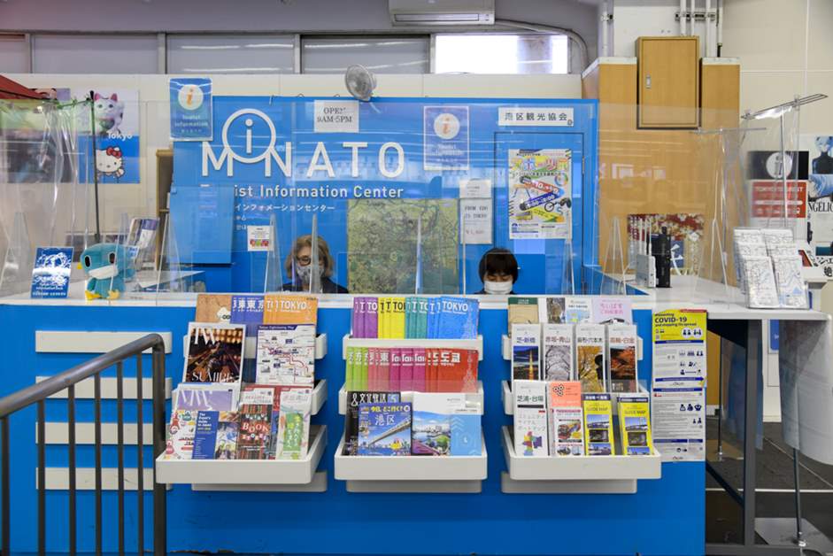 窗口的層架上除有多種與港區和東京觀光資訊相關的手冊之外,也為國外入境的旅人準備了非常豐富的資料。作為觀光客從羽田機場來到港區的主要出入口,這裡會協助旅人順利地進行觀光。