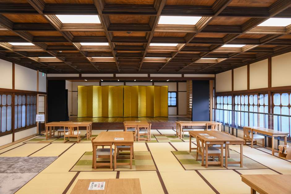 2樓交誼廳因寬達100疊,有「百座席」之稱號,過去是藝妓練舞和表演用的場所。現在則挪作落語公演和歷史文化講座的會場,每逢中午12點至下午2點會當作歇腳處開放蒞臨觀光的訪客使用。