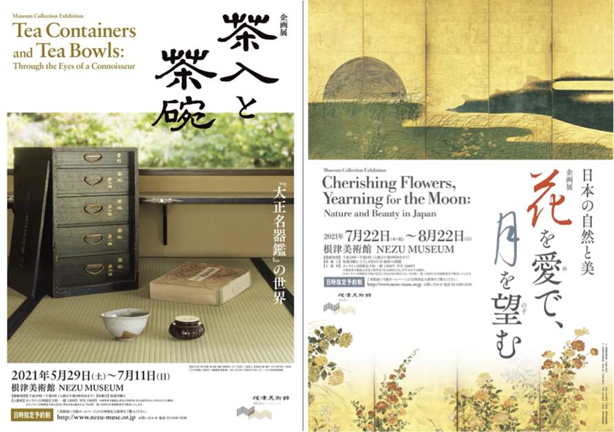 6 月 1 日至 7 月 11 日,博物館將舉辦一場關於茶道中最重要的兩種工具的特別展覽:茶容器和茶碗。此次展覽是為紀念茶器與碗鑑賞入門讀物《大正名酒鑑》出版100週年而舉辦,將探討該書的創作以及其編輯高橋佳雄與凱一郎之間的關係根津。此外,7月22日至8月22日期間還將舉辦“愛花賞月”特展,展出描繪四季花卉等自然景觀的繪畫工藝品,以及和歌詩的版畫。