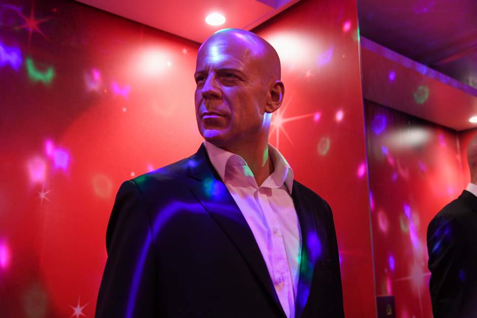 是以"虎膽龍威"等而出名的布魯斯·威利斯的蠟像。被仰慕的好萊塢明星引導著,終於開始夢幻體驗。