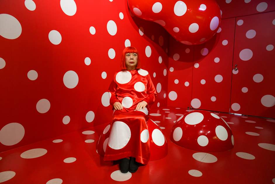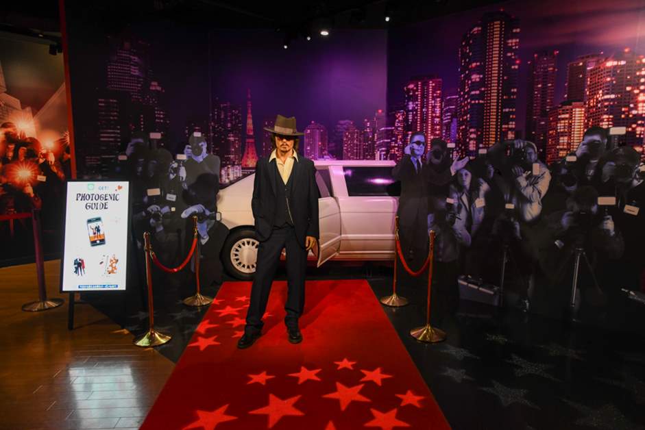 從這裡還繼續展示著北野武及黑柳徹子等日本傳說級明星,在水珠圖案的空間中露出存在感的草間彌生,還有成龍及湯姆·克魯斯等超級真實的展示。因為萊昂納多·迪卡普里奧與布拉德·皮特的展示都充滿閃光的氣氛,所以站在他們中間拍攝就好像感到不知分寸。