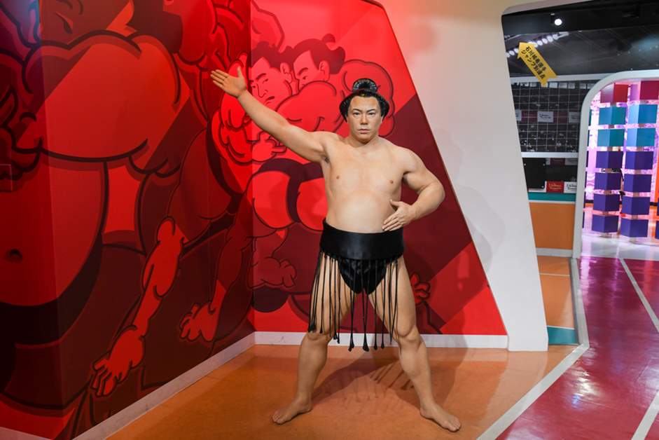 接著日本與世界的領導們的展示,去到超級明星運動員聚集的地區。在於2015年的橄欖球世界盃獲得歷史性勝利的五郎丸步的旁邊是在男子100米田徑比賽中保持以9秒58的世界紀錄的尤塞恩·博爾特。他們兩位的姿勢可以說是"在運動界想模範的姿勢"的雙頭。不過,主動模範那些姿勢有點兒害羞啊···。不不,這是難得的好機會,所以不要害羞,徹底成為他們吧!