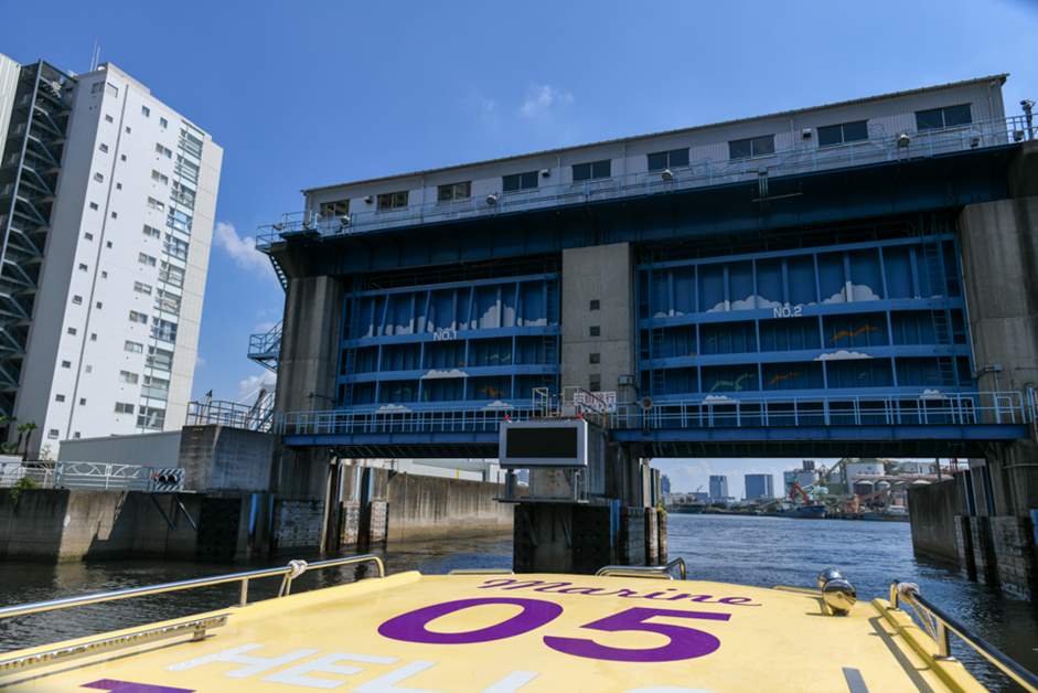 然後充分享受運河巡航之後,接下來,穿過隔着運河和大海的高濱水門,前往東京港的大海!