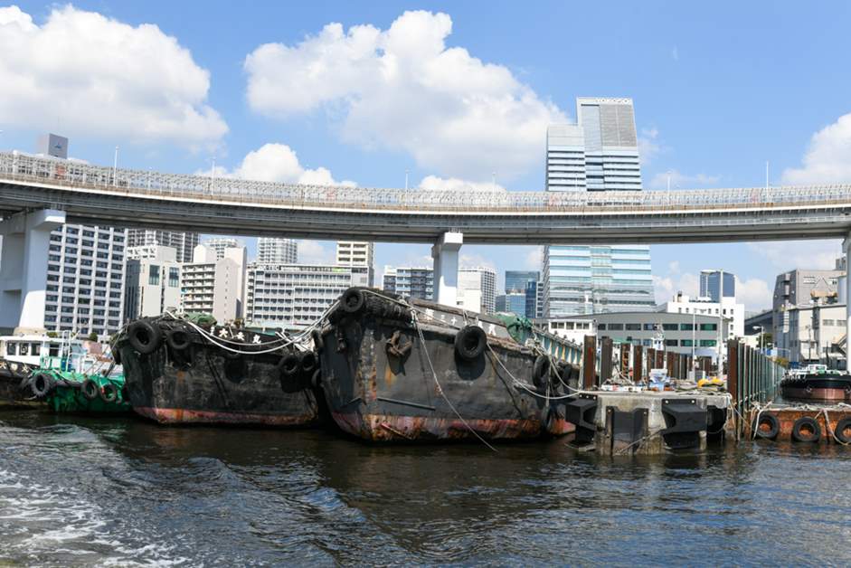 芝浦運河沿水路建成了高層住宅和辦公樓,形成了獨特的芝浦運河。之所以能在多座小橋的運河內快速移動,是因爲它是一艘小船。經過竹芝橋和浦島橋等橋下空蕩蕩的地方,是非常有魄力的體驗。