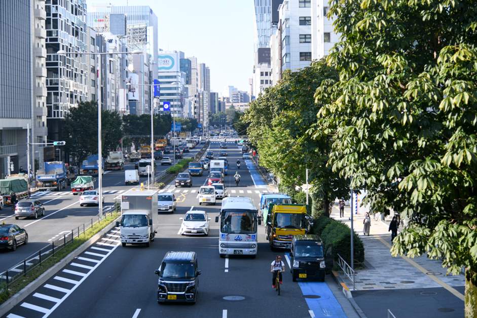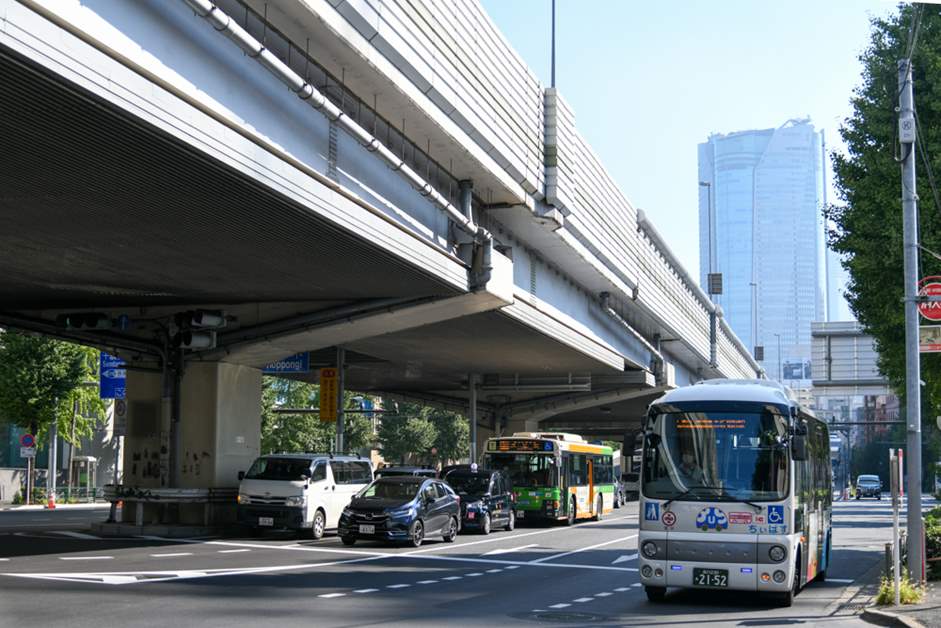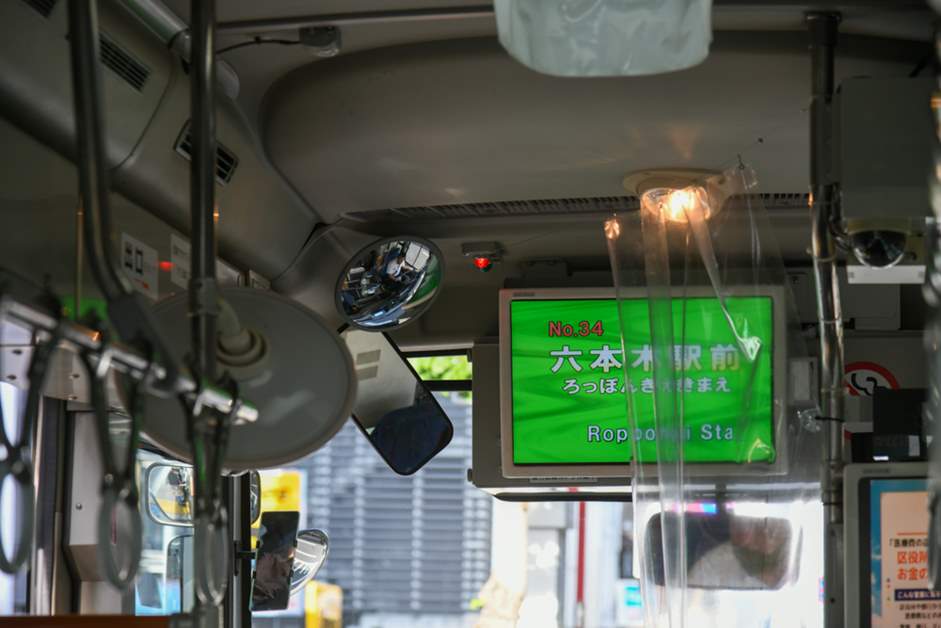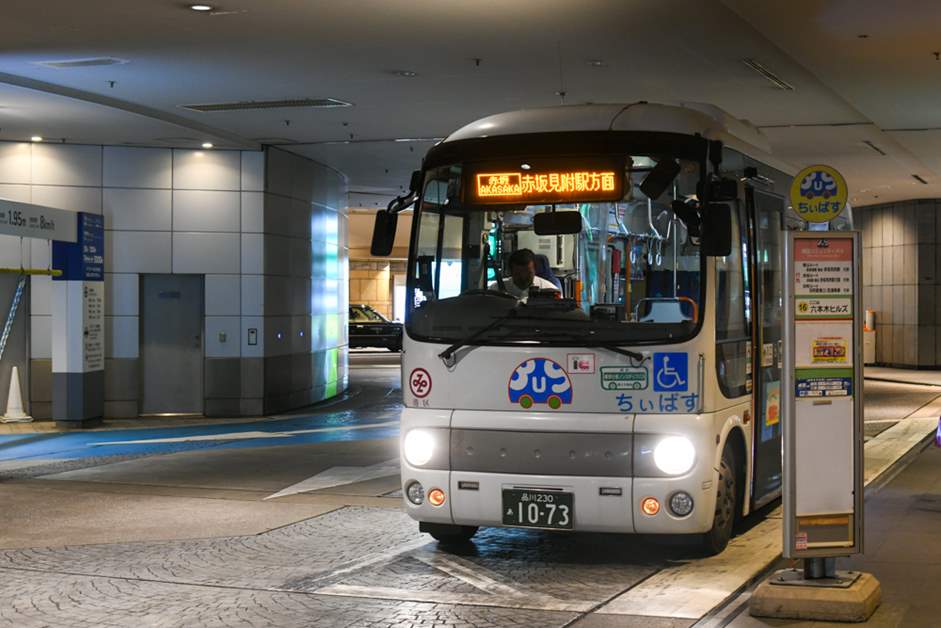 在表參道享受購物或美食後,從「表參道站」的巴士站再乘坐Chii Bus從青山街的主幹道往赤坂方面走。途中,在左邊可以看到有養樂多燕子的選手們被畫的巨大招牌的球場街的風景。另外,因為車內廣播支持英文,而且在車內屏幕上還顯示示英文,中文,韓文,所以外國遊客也可以放心利用。