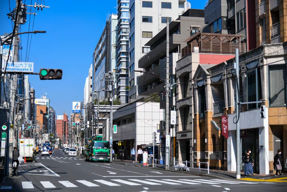 巴士以六本木新城為背景通過西麻布去往南青山方面。然後在「南青山六丁目」巴士站第一次下車。