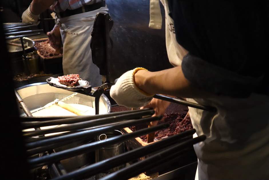 鯛魚燒的紅豆餡使用北海道十勝產的最適合紅豆餡的紅豆,每天在鍋裏煮8個小時。 用手藝人的手一尾一尾地烤好的味道,薄薄的脆脆的皮和充分的豆沙餡的平衡是絕妙的。 做得很漂亮,不會膩。 推薦就這樣趁熱吃,帶回去的時候用烤麵包器稍微烤一下就會恢復美味。