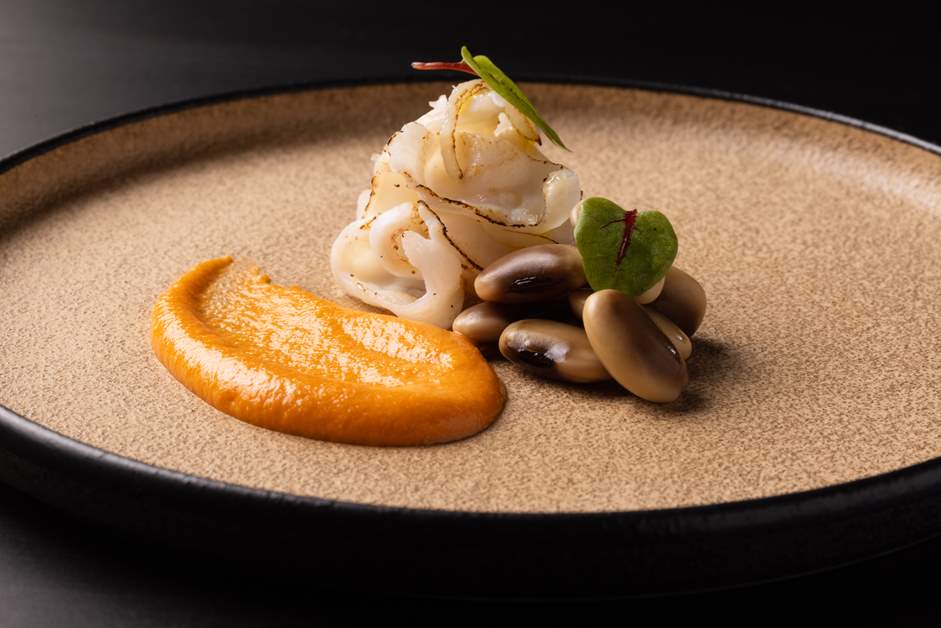 餐廳套餐中的菜品之一“炙烤水章魚 配大和豬油及澱粉 奈良的西班牙”,就是用新鮮水章魚製作而成。