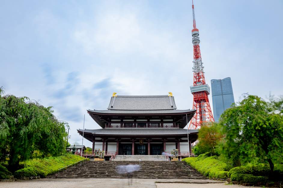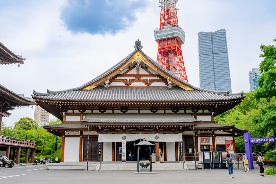 穿過三解脫門,映入眼簾的便是大殿。這是首都圈最大規模的寺廟殿堂,負責舉辦各類形式的祭儀法事。這裡還是與東京塔堪稱絕配的極佳拍攝景點,時而會看到有人舉著相機拍照。