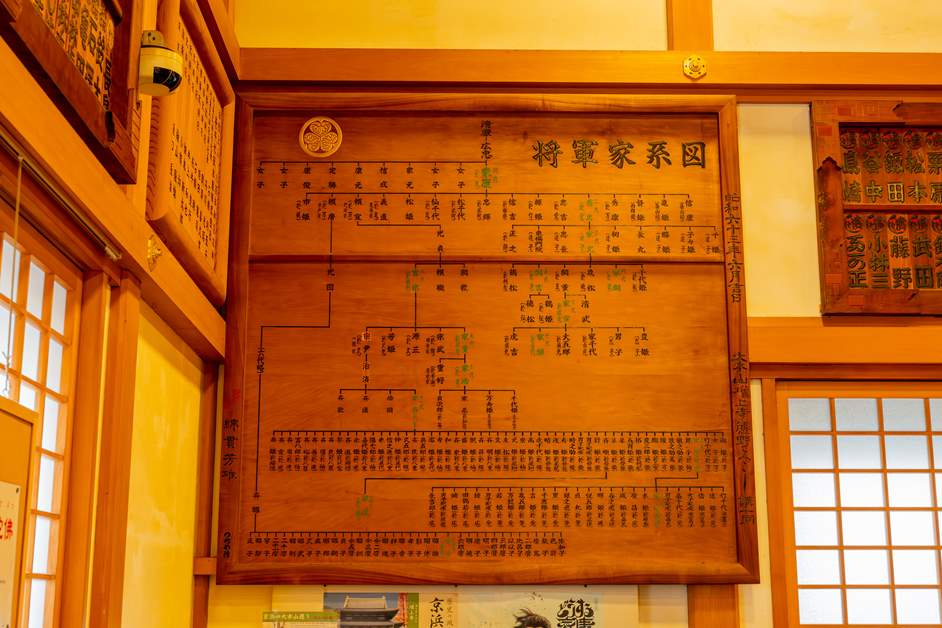 在安國殿,除供奉因帶來好運和祛除災厄的而備受尊崇的佛像“黑本尊”以外,還懸掛著德川將軍的家系圖譜。
