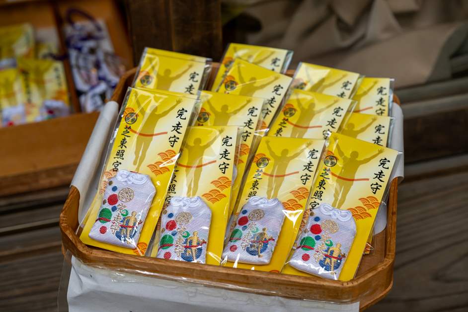 在授予所,人們可以得到保佑出行安全及長壽、健康等各種福祉的神籤和護身符。以馬拉松選手的輪廓為特徵的“完走守”,據說能賜予堅持不懈直到最後的神力。