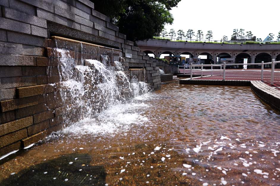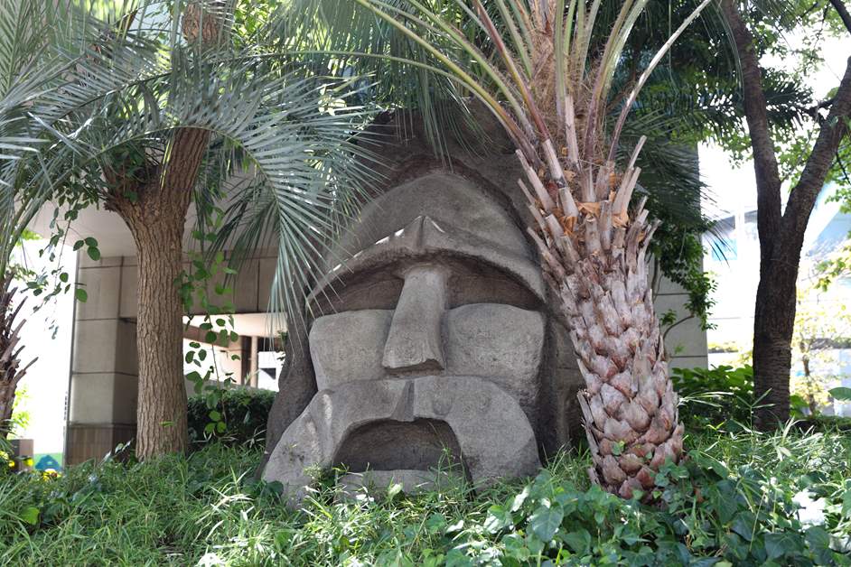 中央廣場有噴泉和摩艾像等,適合帶著孩子前往。 此外,夜晚桅杆會被燈光照亮,非常引人注目。