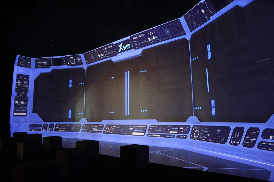 正面打開就能看到“X-SHIP”,這是一個可容納約40人的劇院,外形酷似駕駛艙。 參觀者乘坐太空船X-SHIP,觀看一段約7分鐘的影片,帶領參觀者探索美蓓亞三美的零件和海外工廠。