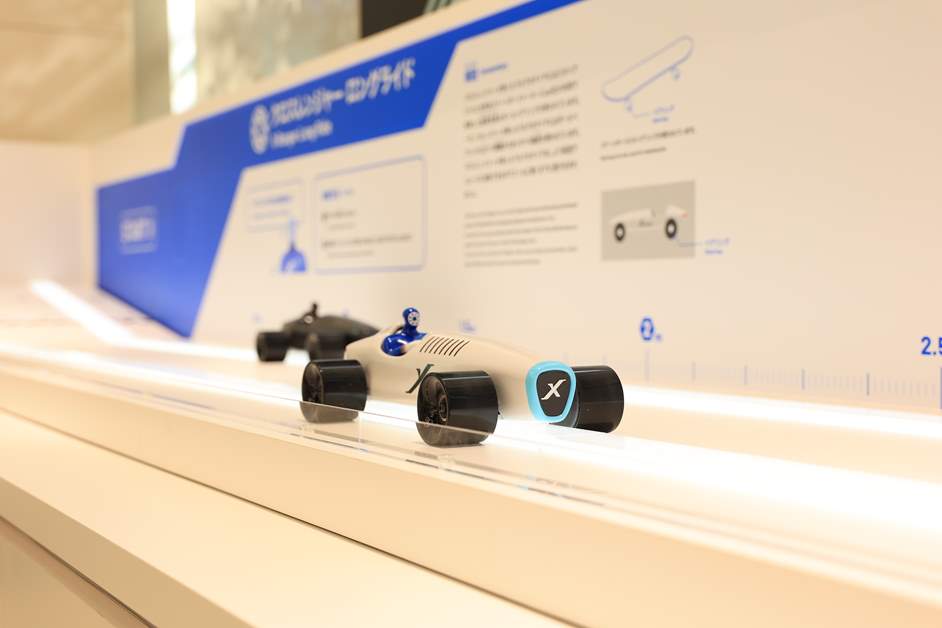 在「軸承」展台,美蓓亞三美與滑板製造商合作開發的超高性能滾珠軸承十分引人注目。 X-RANGERS乘坐的汽車使用的是超高性能滾珠軸承,而FAKE-RANGERS乘坐的汽車使用的是摩擦力大的滑動軸承,參觀者可以比較哪輛車最先完成比賽以及速度相差多少。