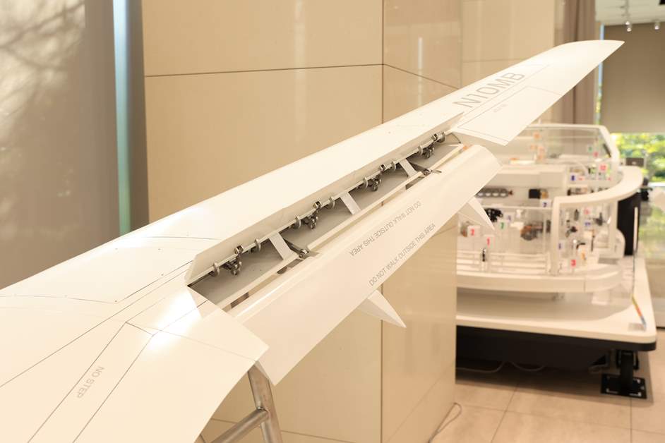 「X-WORLD」展區展示了世界各地使用的美蓓亞三美產品,包括選票分揀機、無人機和嬰兒車等各種領域的設備。 由美蓓亞三美的滾柱軸承組成的飛機主翼襟翼的模型,大小為實物的10分之1。 軸承的工作原理簡單易懂。