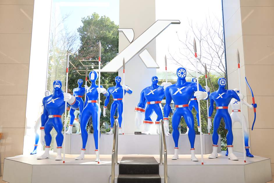 參觀者還可以和真人大小的X-RANGERS拍照留念。 引人注目的是每個X-RANGERS的角色形象臉上的圖形標誌,讓這些角色形象負責的業務一目了然。