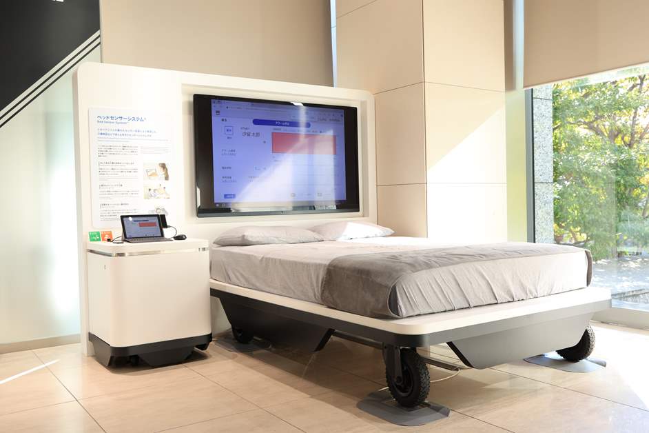 「X-FUTURE」展區展示了美蓓亞三美集團面向未來的解決方案,介紹了利用感測器技術的護理設施等領域可以使用的床感測器系統®。 親自躺在床上,感受一下感測器的精密度吧。