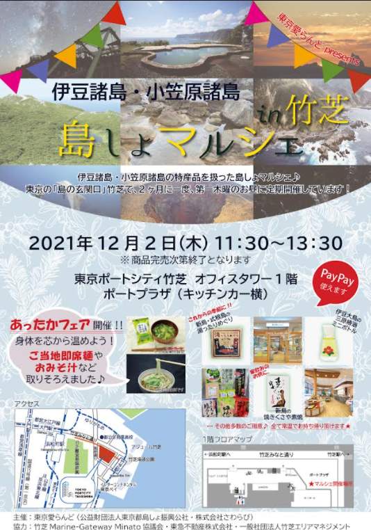在東京的「島的門戶」竹芝,每兩個月舉行一次,第一個星期四中午定期舉行。
