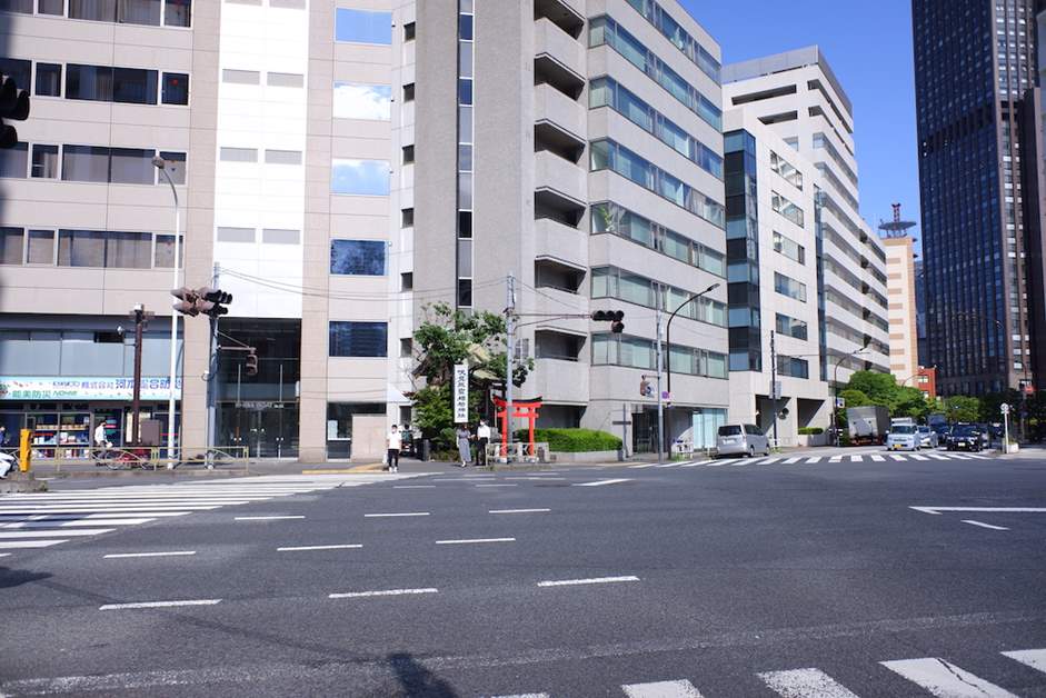 Crossing the intersection in front of Akabanebashi Bridge, I notice an Inari shrine on the corner. I take a moment to ask the god who watches over my hometown to make my day a pleasant one.