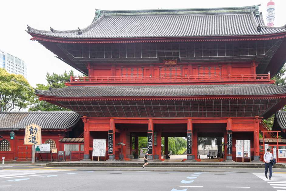 Although I planned to run around the perimeter of Shiba Park by passing through the magnificent Sankaidemon gate of Zojoji Temple, passing Zojoji Temple led me to find a nice straight path that looks up at Tokyo Tower! Here, I changed my planned course a bit and took a shortcut. I couldn't stop myself from getting excited at the sight of Tokyo Tower, which got closer with every step I took!