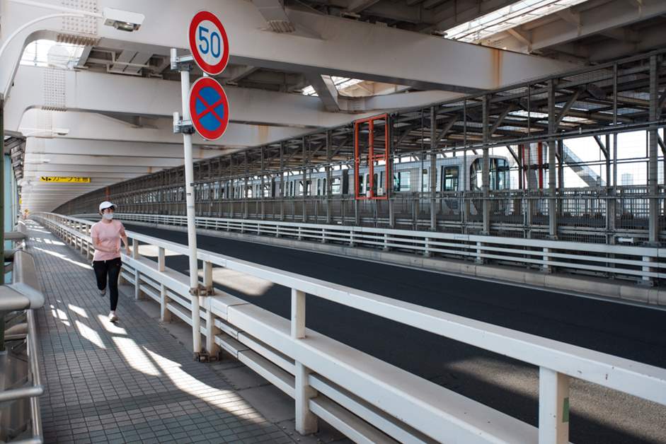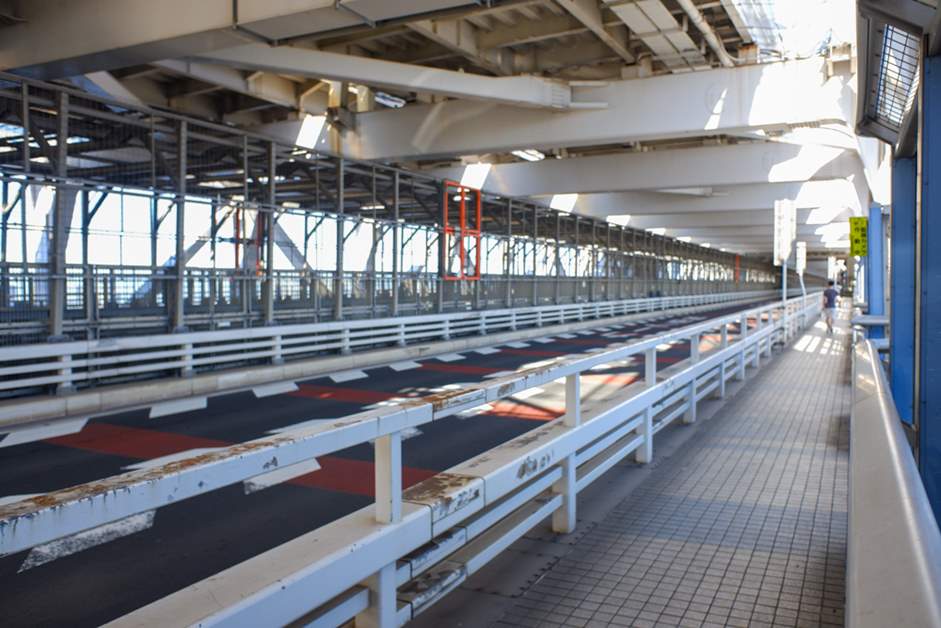 Rainbow Bridge is a double-structured bridge, with the Shuto Expressway and the Harbor Road on one level and the Yurikamome Line on the other. The promenade on the Harbor Road level is 1523 meters long in just one direction. There are no vending machines along the way, so if you're concerned about running out of water on your run, be sure to bring a drink with you.