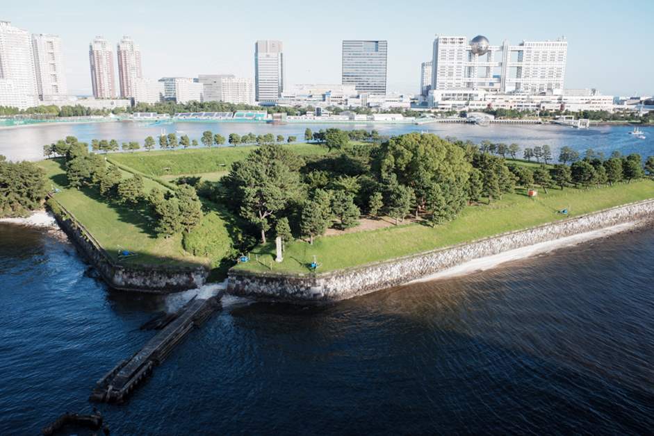 There are many points on the bridge that have information on the history of Tokyo Bay, the Tokyo Port Tunnel, the Harumi Cruise Terminal, and other buildings in the area. Approaching the Odaiba side of the bridge, you'll be rewarded with a view of Odaiba Seaside Park, where the Tokyo 2020 Triathlon was held, and Shinagawa Daiba, the site of the Edo Shogunate's artillery emplacements from which the name "Odaiba" is derived.