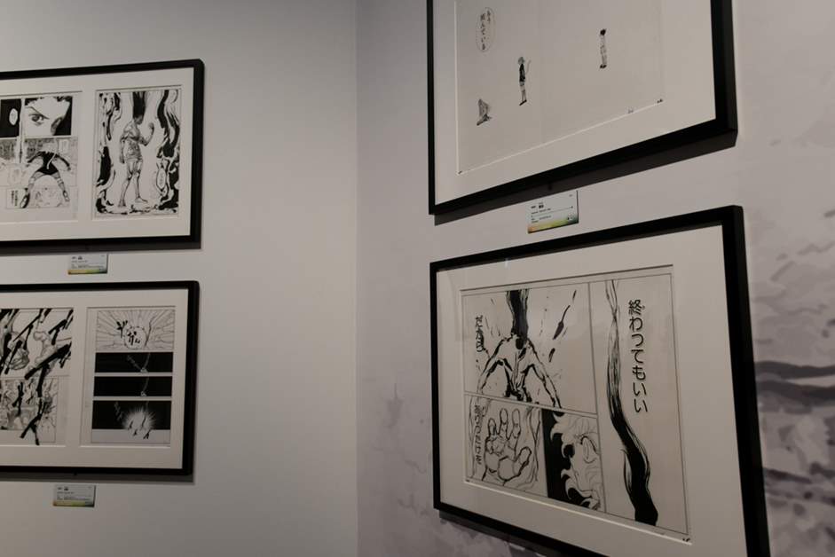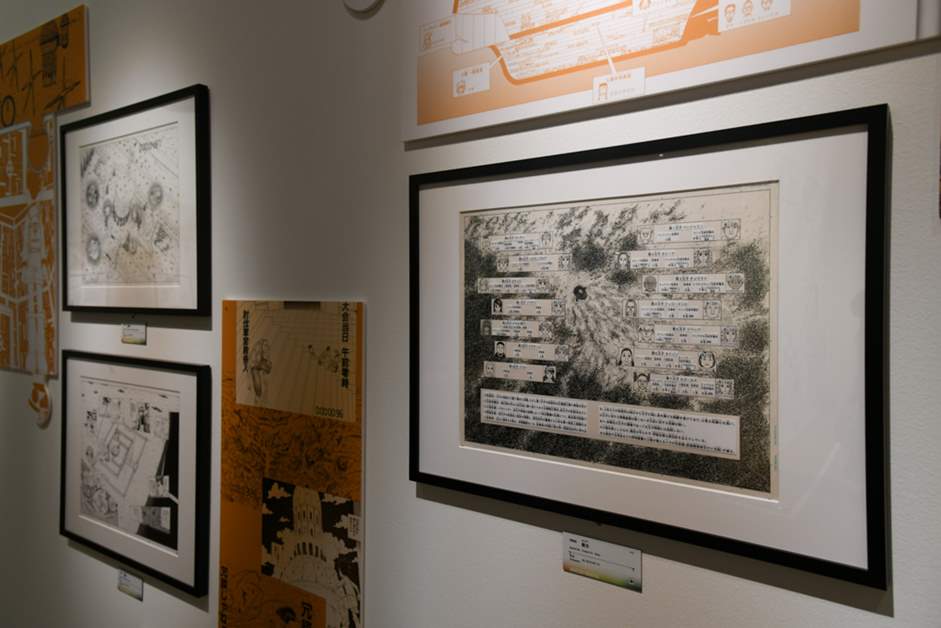 Including this prologue area, the exhibition hall is composed of six areas, and from the beginning to the middle of the exhibition, original drawings and materials of three representative works, including "YuYu Hakusho", are displayed. The exhibition also unravels the charm of each work, which is precisely crafted like a "puzzle" based on the four key elements of "character," "description," "setting," and "story.
