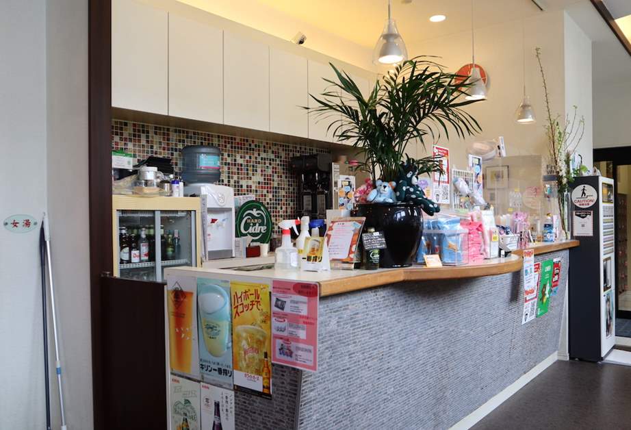 Benches and tables are placed behind the front desk. You can have a soft drink or beer and rest your body after taking a bath.