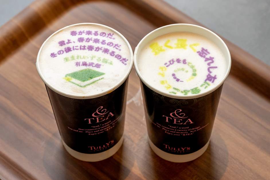 In collaboration with the bookstore magmabooks, Tully's Coffee &Tea also offers the Bungo Latte and Bungo Royal Milk Tea, each featuring famous quotes from literary works. These drinks are available exclusively at the Toranomon Hills branch.