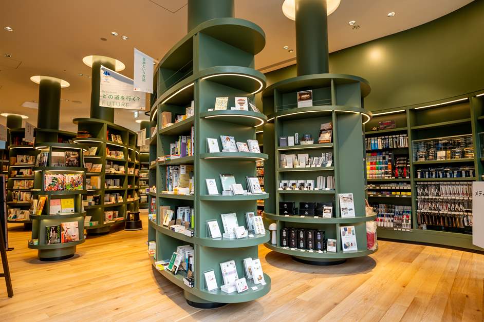 Across the deck, a new concept store by major Japanese bookstore Maruzen Junkudo called magmabooks has opened. Based on the concept "Strike while the knowledge is hot," this innovative bookstore goes beyond simply selling books—it offers an experiential space focused on intellectual excitement and creativity. The second floor features bookshelves organized by theme, presenting new values and worldviews.