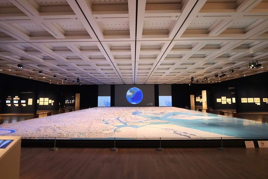 展示スペースに入ると、早くも圧倒されてしまいます!中央には巨大な東京の都市模型がドーンと広がっています。この都市模型は、2018年にフランスで開催されたで展示されたものです。