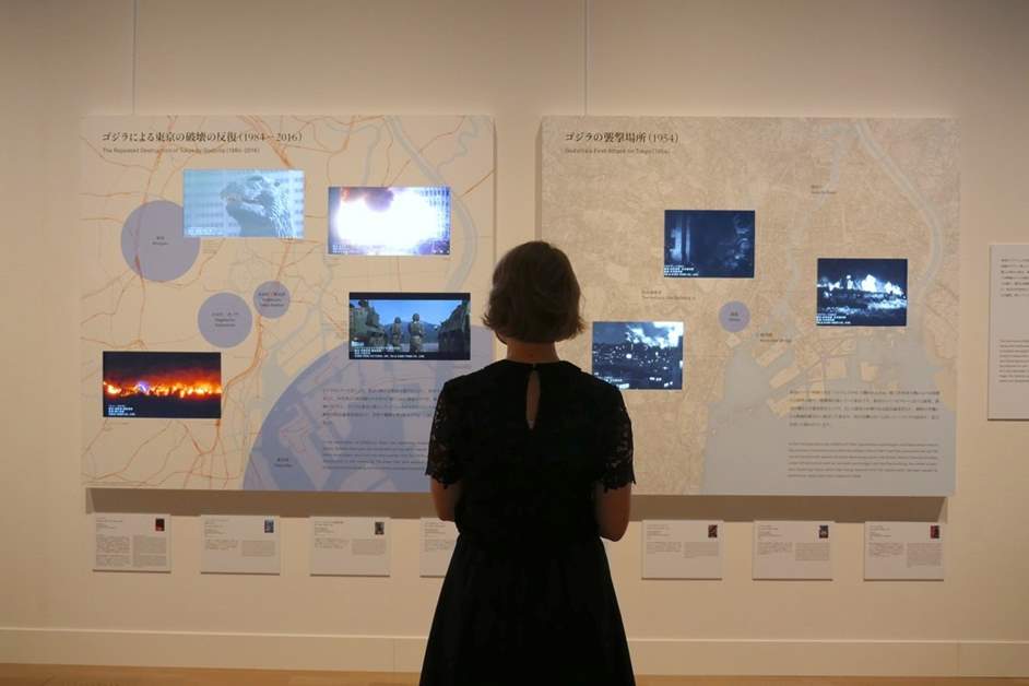 ゴジラによって破壊されてきた数々の「東京」の街を紹介するパネル