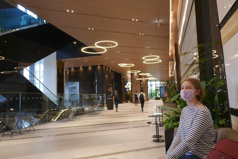 「東京ポートシティ竹芝」は、ビルを掃除ロボットが巡回したり、ランチをドローンで運ぶなど、ハイテクな取り組みが話題を呼んでいます。他にも、ビル内に設置された約1,000のセンシングデバイスで混雑状況を把握して、ビル空調を調整できたり、ビルの入居者は、顔認証によって非接触でオフィスまで入れたり、買い物ができます。