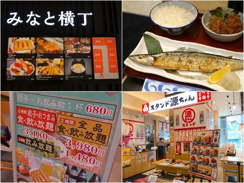 ビル内には複数のレストランやカフェがあります。「みなと横丁」は、餃子、ラーメン、沖縄料理、海鮮料理などカジュアルな飲食店がずらりと並んでいます!