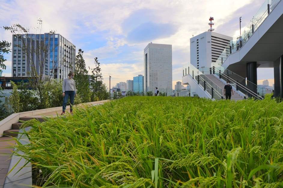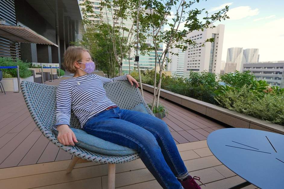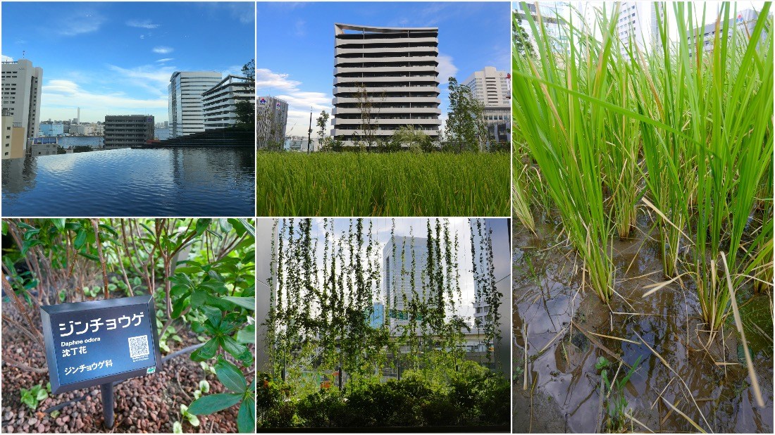 「東京ポートシティ竹芝」のもう一つの特長は「スキップテラス」と呼ばれる屋外テラスエリアです。「雨・水・島・水田・香・菜園・蜂・空」と、8つのエリアにはそれぞれテーマがあって、階段と遊歩道で結ばれています。