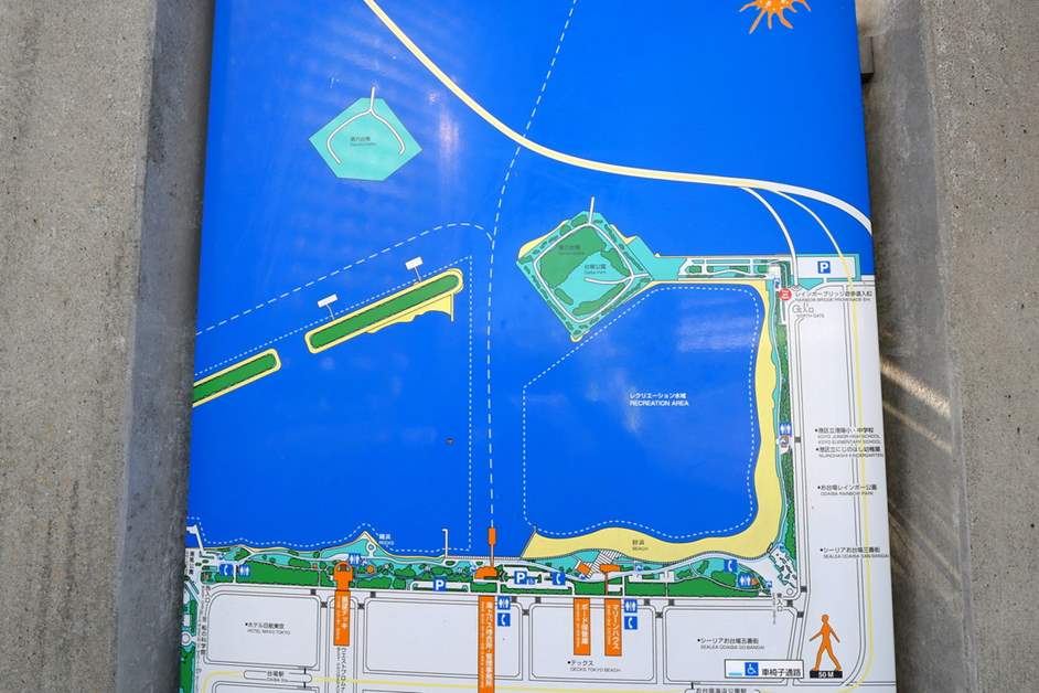 アクセス:お台場海浜公園駅(ゆりかもめ)、東京テレポート駅(りんかい線)、レインボーブリッジ遊歩道台場口すぐ(徒歩)、お台場海浜公園駅前(バス)、台場駅前(バス)